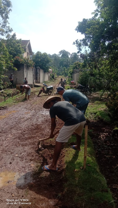 SWADAYA MASYARAKAT DUSUN 2 DAN 3 DALAM PEMBERSIHAN JALAN LINGKUNGAN UNTUK MEMPERSIAPKAN PENERIMAAN PROGRAM BANTUAN RABAT BETON DARI KABUPATEN LAMPUNG TIMURMELALUI DINAS LINGKUNGAN HIDUP