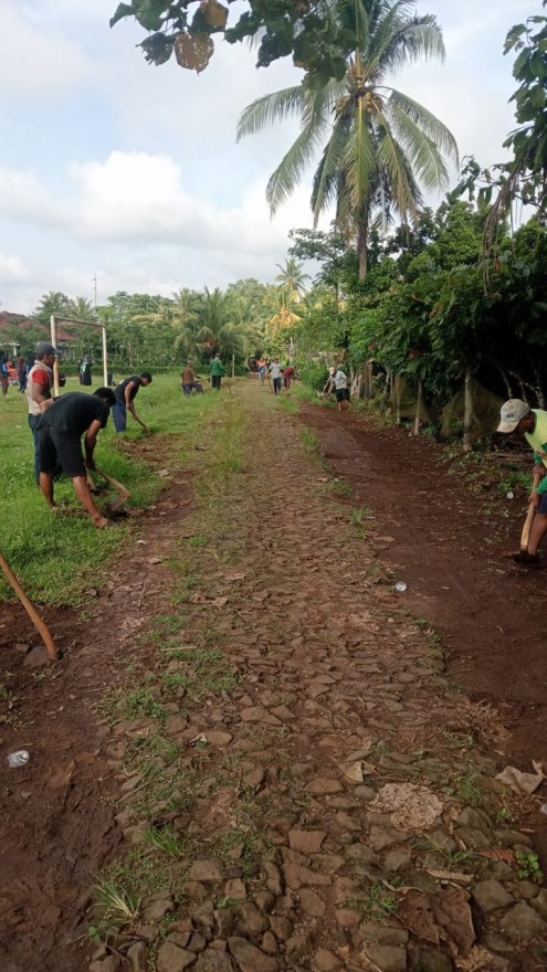 SWADAYA MASYARAKAT DUSUN 2 DAN 3 DALAM PEMBERSIHAN JALAN LINGKUNGAN UNTUK MEMPERSIAPKAN PENERIMAAN PROGRAM BANTUAN RABAT BETON DARI KABUPATEN LAMPUNG TIMURMELALUI DINAS LINGKUNGAN HIDUP